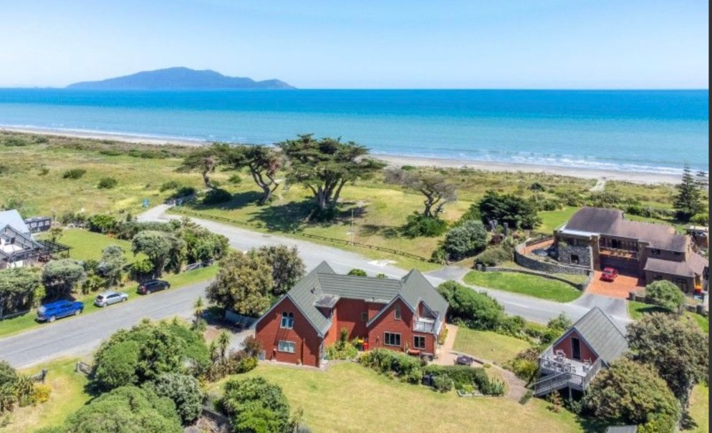 This is where we live. The red house in the center. The island in the distance is Kapiti Island. We live on the Kapiti Coast.