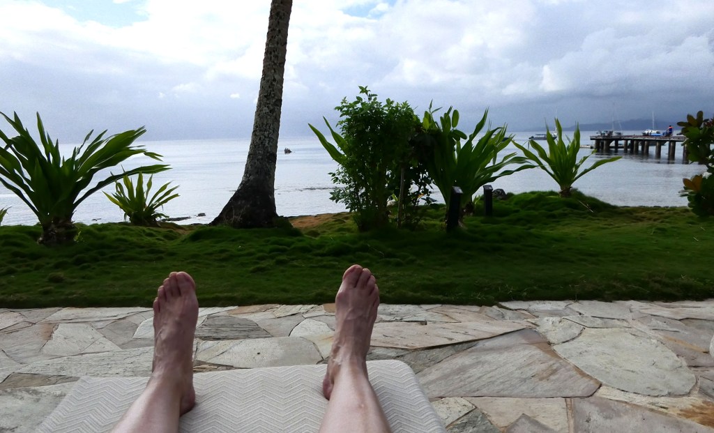 Unfortunately, the weather for the week was much like we had left behind–windy, rainy, cloudy. The only difference was that Fiji was warm. But with the strong winds, there was little opportunity to head out beyond the reef surrounding the island. Visiting the marine reserve or any of the other coral reef spots is entirely weather dependent and it was simply too rough to be out on a boat let alone snorkeling. The one day we did try to snorkel from a boat the water was so rough, I nearly lost my fins. We decided it was better all the way around to stay near the shore and snorkel the resort’s growing coral garden. It had some remarkably varied fish and we did not have to worry about being pulled away by strong currents.