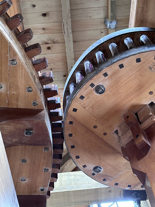 Then we went to the next floor where we discovered the most exciting part of the windmill. It is an actual working grain mill with wheels and gears and sifters. What fun! We bought buckwheat flour and corn meal (impossible to find in New Zealand).