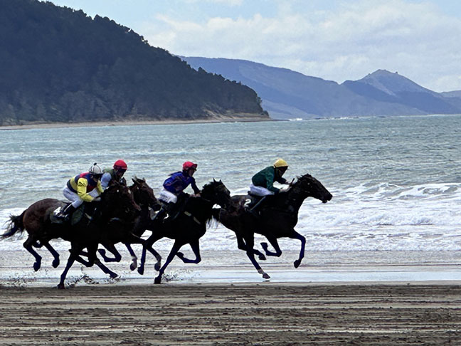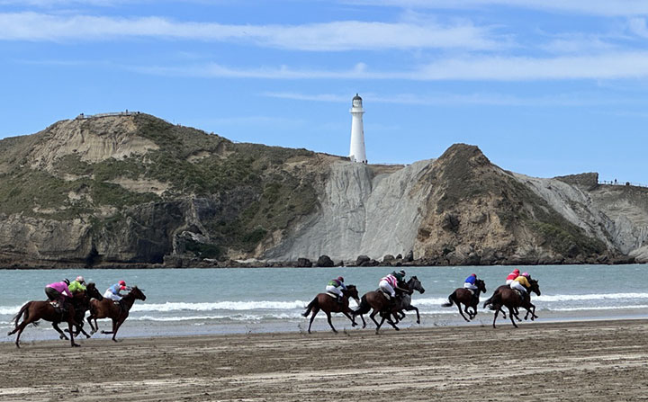 Okay, we like horse racing.  Plus, how can you not love the idea of horses racing on the beach?  Every year there is a day of horse racing on the beach next to the Castlepoint lighthouse located on the eastern shore of the lower North Island.  This is an event that just celebrated its 151st year.  It is a big deal and people come from all over to watch and just to enjoy a lovely day at the beach.  Thousands of people line the beach with chairs and blankets and picnic baskets, and parking lots overflow with campers and trailers.  It is a family event with kid races and entertainment between races.