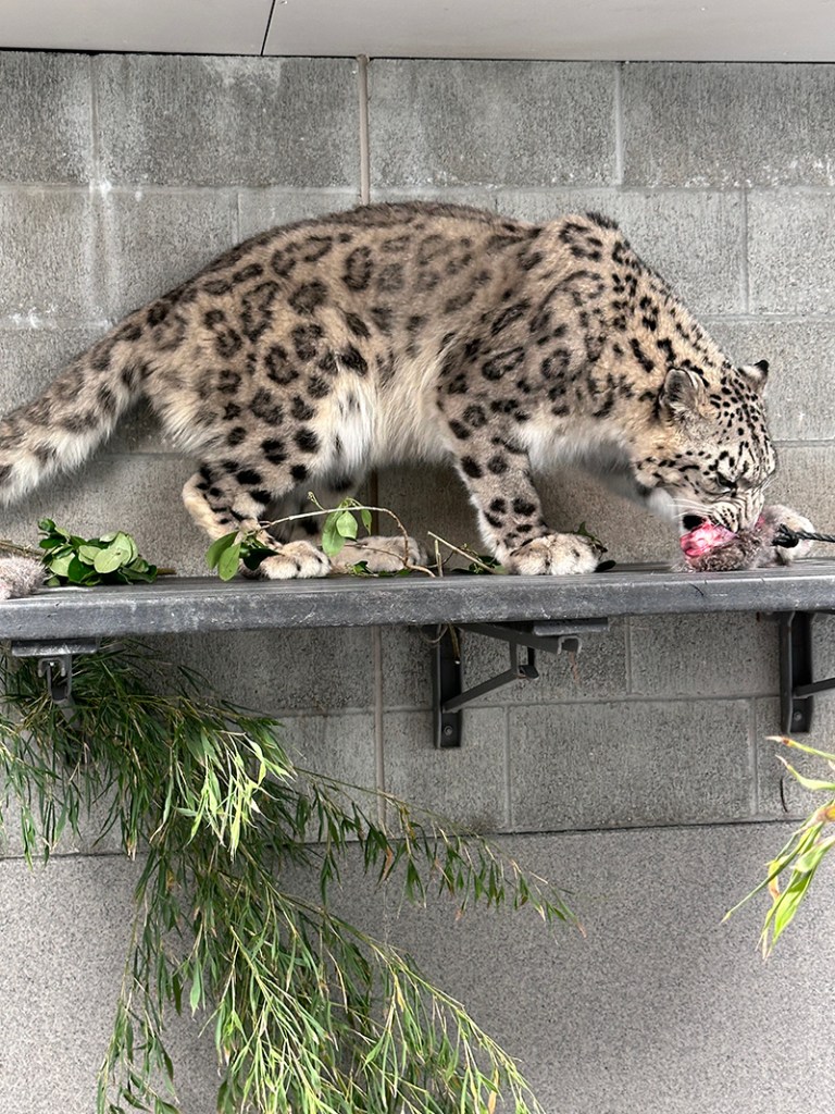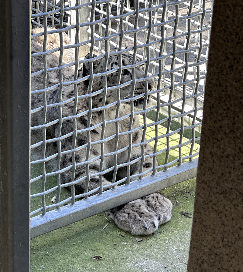 We visited the snow leopards at the Wellington Zoo.  I don’t normally go in for zoos, but the Wellington Zoo built a sanctuary for two snow leopards.  They were offering an encounter—which entailed getting up close and personal as one can get with a wild cat—with a metal fence between us—and letting us set out their food.  It was hard to resist not visiting.